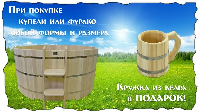 Только до 31 августа, к каждой купленной купели или фурако Вы получаете в подарок стильную кружку из кедра! Мелочь, а приятно!