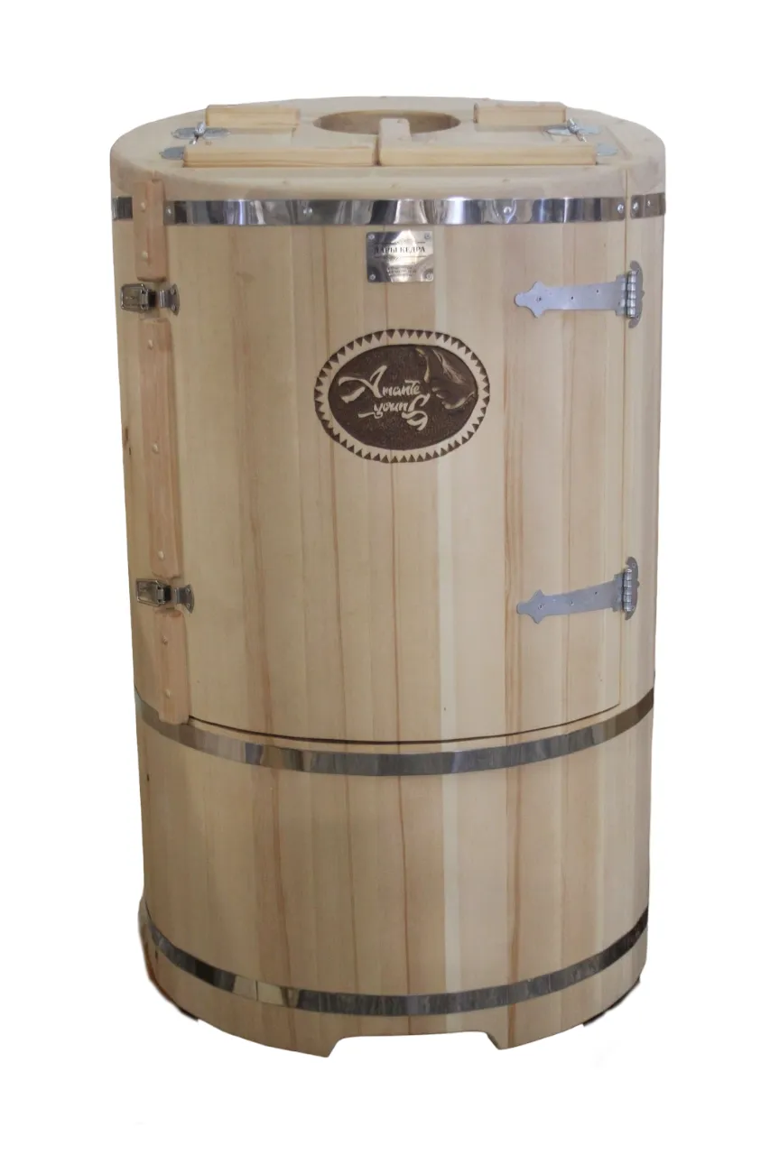Бондарная фитобочка имеет такое название, потому что выполнена по старинной технологии в шип-паз, без использования каких-либо иных дополнительных скрепляющих элементов. Производственное оборудования позволило для круглых бочек применить лунный паз глубиной 2.5 см, который имеет надежное прилегание досок друг к другу, скрепляя бочку плотно, не пропуская пар и имеет вид фаски. Кедровая Фитобочка - это мини парная, которую можно установить в квартире и каждый день использовать в домашних условиях. Настоящая лечебница для здоровья всей семьи. Во время парения человек сидит внутри кедровой бочки, а голова находится снаружи. Благодаря этому исключается перегрев и процедура парения комфортно переносится пожилыми людьми и детьми.