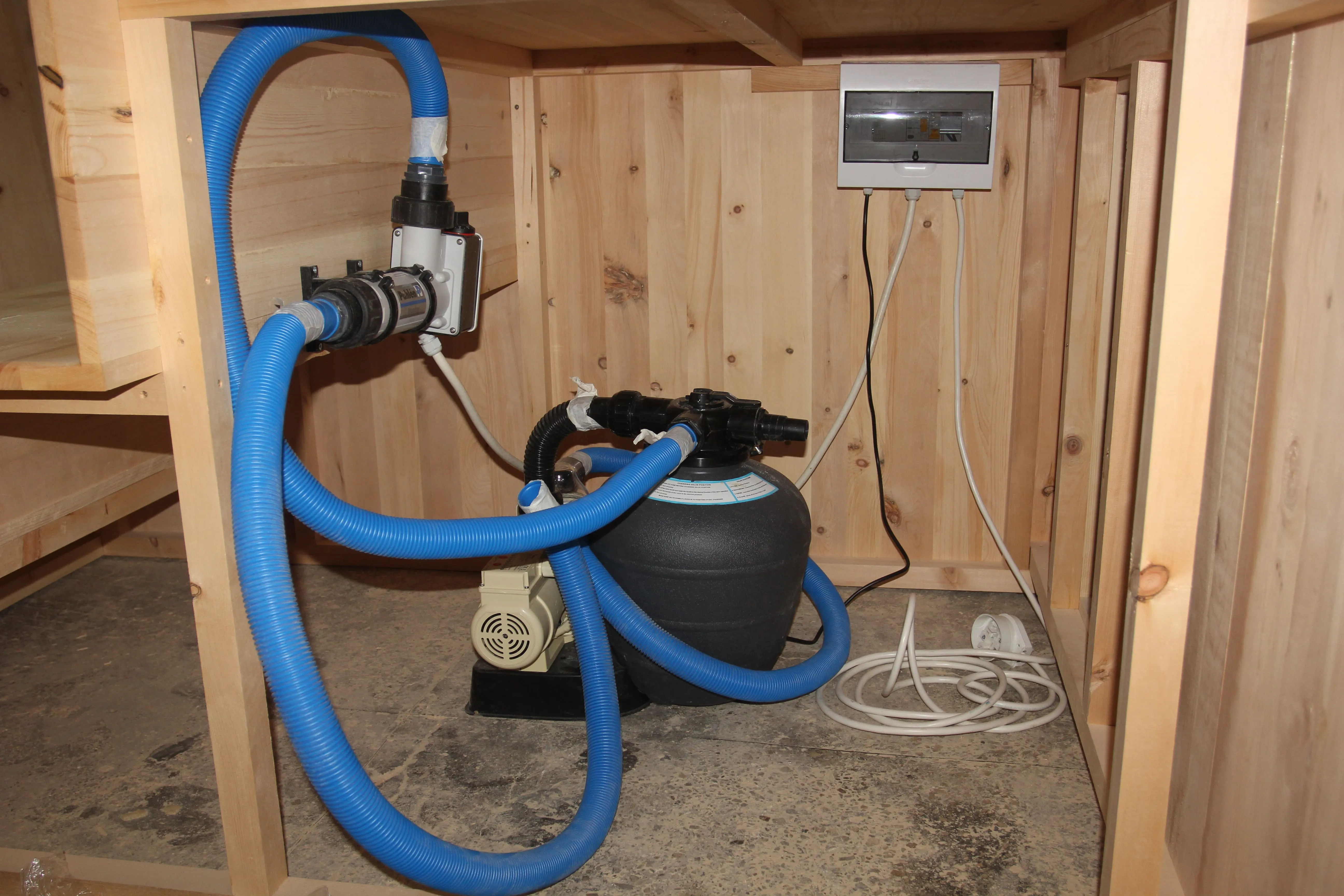 Короб из кедра скроет от глаз шланги и фиттинги системы слив-перелив.