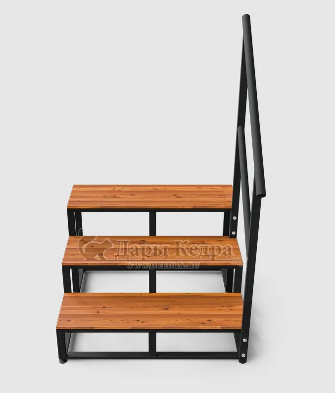 Уличная лестница-крыльцо Лестница выполнена из стальной квадратной профильной трубы 40х20 мм. Ступени обшиты кедровой доской. Может быть изготовлена по вашим размерам