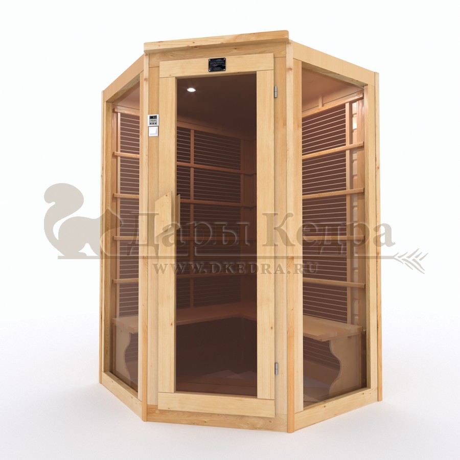 • Пятиместная (семиместная) угловая инфракрасная сауна кабина из кедра с керамическими излучателями Это специально оборудованная кедровая кабина для прогрева тела человека сухим теплом. Воздух в таких парных не нагревается. Инфракрасные лучи воздействуют на тело, равномерно прогревая мышцы, суставы и органы. Керамические излучатели похожи на лампы, имеют высокую температуру нагрева, поэтому защищены противоожоговыми решетками. Тело человека в таких саунах нагревается интенсивнее. Работает кабина за счет электричества. Установка сауны в угол, позволяет рационально использовать пространство помещения. Эта вместительная модель подходит для коммерции. Обращаем Ваше внимание что в стандартную комплектацию входит трапик для ног, но вы можете его заменить на цельный пол совершенно бесплатно! Целебная древесина кедра и инфракрасные лучи благотворно влияют на организм человека в целом. При регулярном использовании инфракрасной сауны укрепляется иммунитет, улучшается кровообращение и состояние кожи, выводятся токсины.
