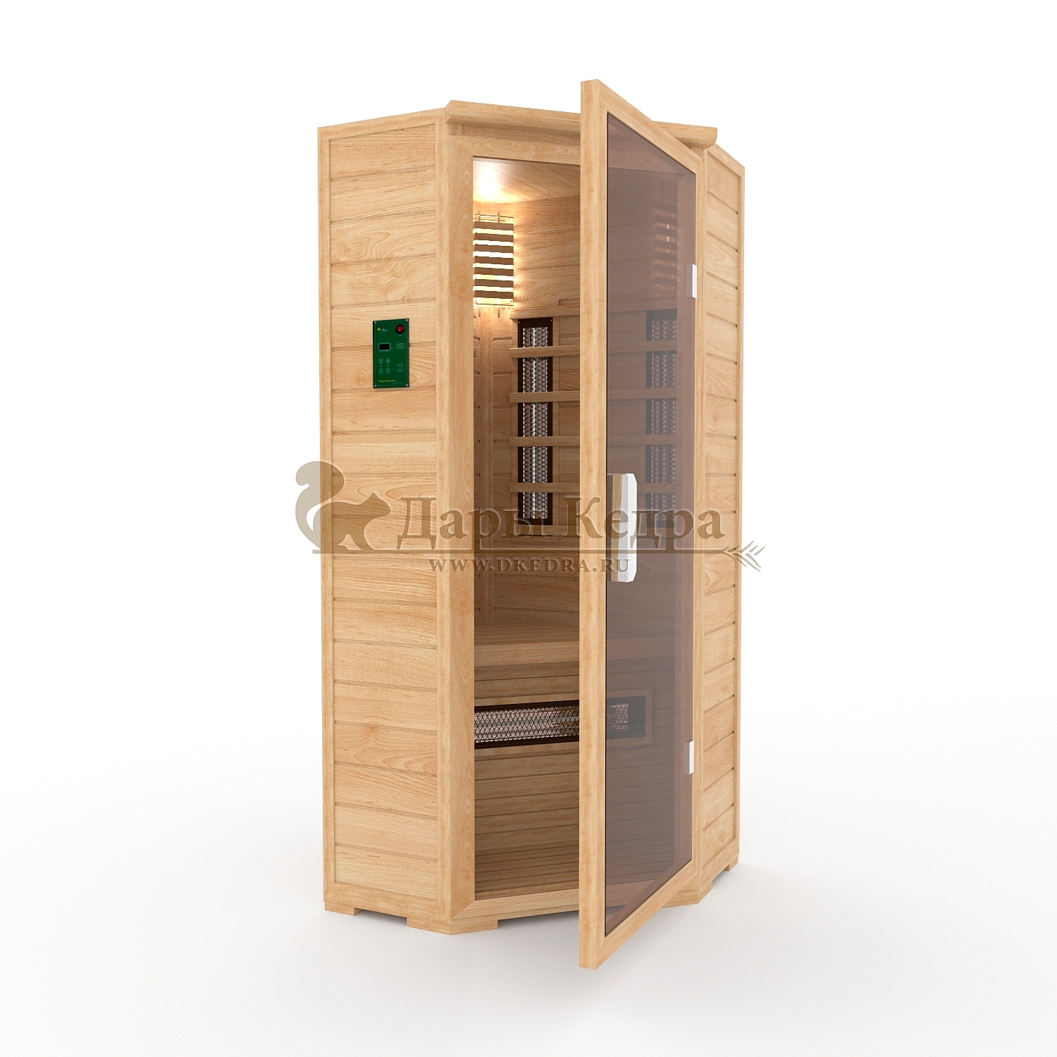 • Одноместная угловая инфракрасная сауна кабина из кедра с керамическими излучателями Это специально оборудованная кедровая кабина для прогрева тела человека сухим теплом. Воздух в таких парных не нагревается. Инфракрасные лучи воздействуют на тело, равномерно прогревая мышцы, суставы и органы. Керамические излучатели похожи на лампы, имеют высокую температуру нагрева, поэтому защищены противоожоговыми решетками. Тело человека в таких саунах нагревается интенсивнее. Работает кабина за счет электричества. Установка сауны в угол, позволяет рационально использовать пространство помещения. Подходит как для домашнего использования, так и для коммерции. Обращаем Ваше внимание что в стандартную комплектацию входит трапик для ног, но вы можете его заменить на цельный пол совершенно бесплатно! Целебная древесина кедра и инфракрасные лучи благотворно влияют на организм человека в целом. При регулярном использовании инфракрасной сауны укрепляется иммунитет, улучшается кровообращение и состояние кожи, выводятся токсины.