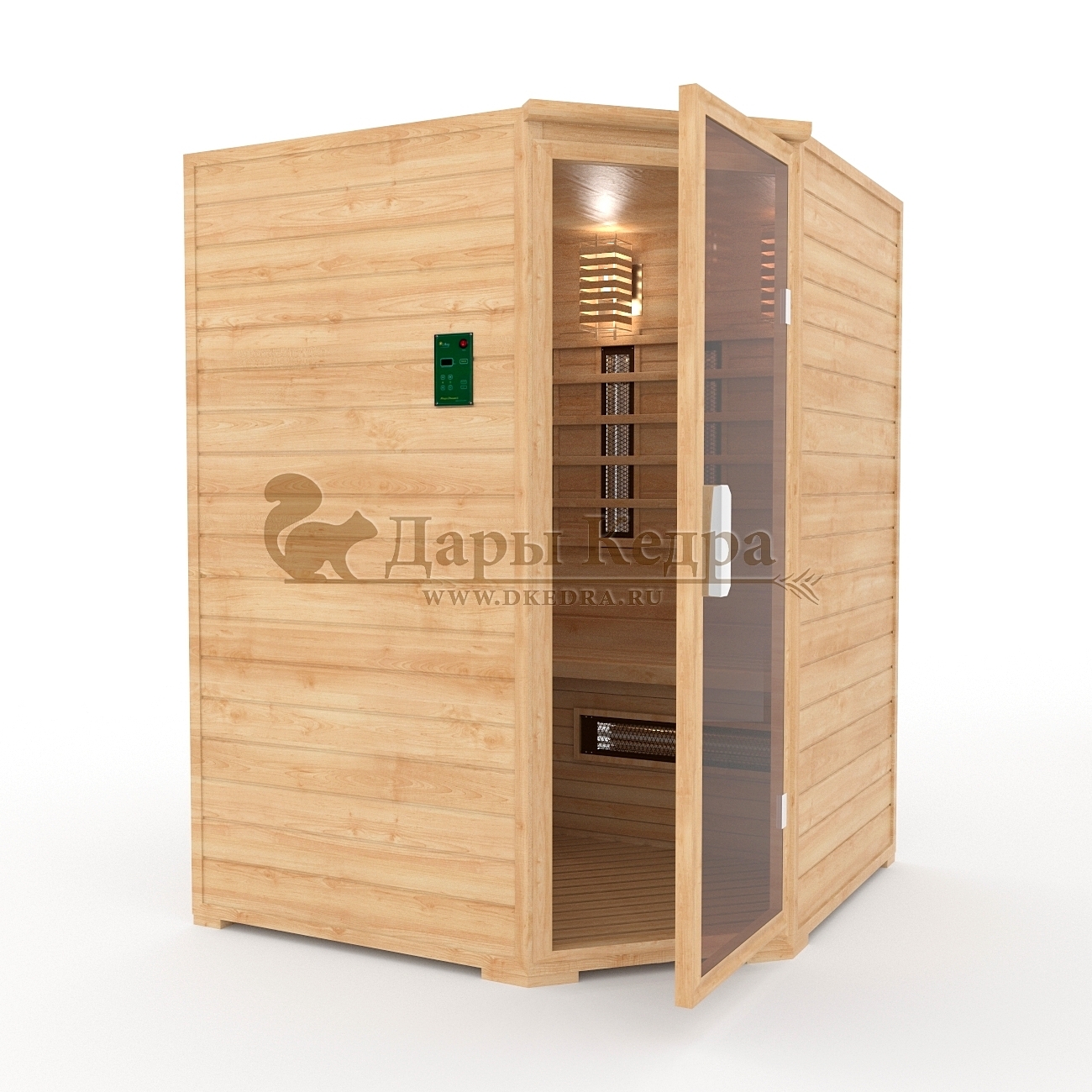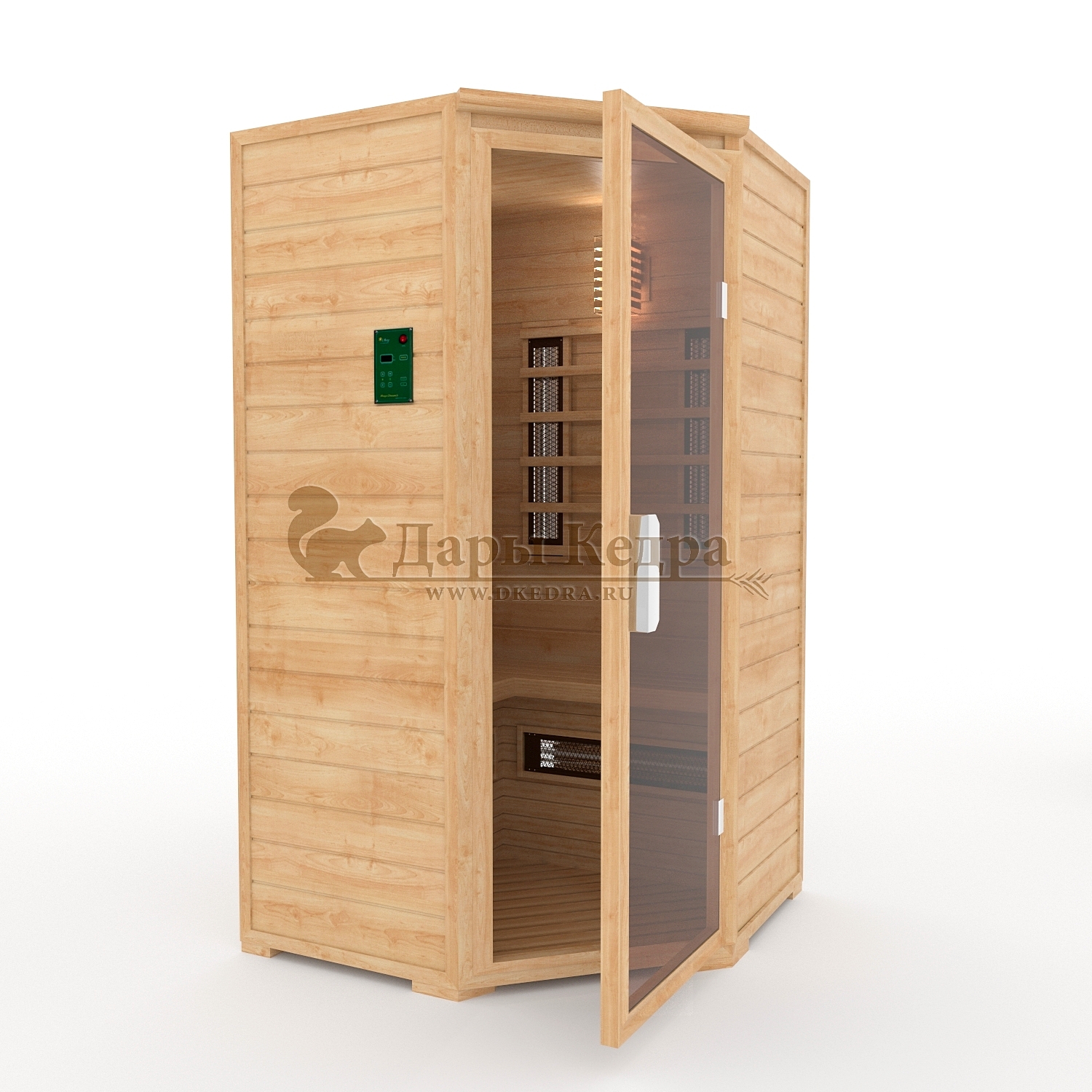 Трёхместная угловая инфракрасная сауна кабина из кедра с керамическими излучателями